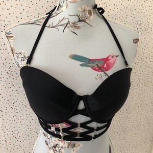 Brand New New Look Black Strappy Cage 32d bikini top size