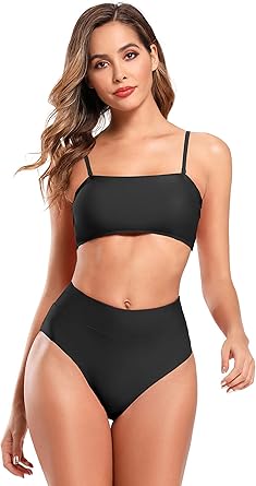 SHEKINI Women's Bandeau Bikini High high waisted tie side bikini