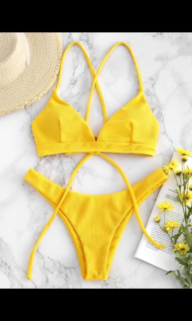 Zaful Ribbed Criss Cross High Leg zaful ribbed high leg bikini set