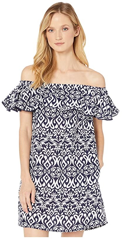 Tommy Bahama Ikat Diamonds Ruffle Dress tommy bahama womens swim cover up