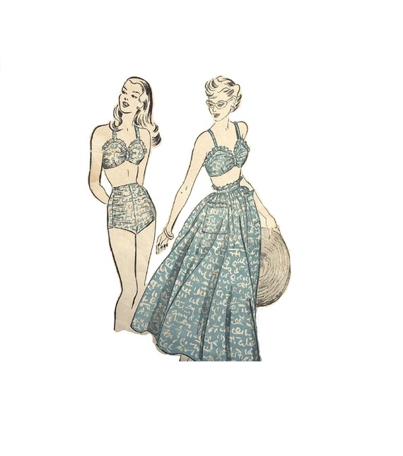 1940s Bathing Suit Pattern Bra Top with long skirt bathing suit