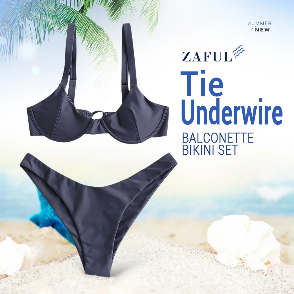 ZAFUL Bikini Tie Underwire Balconette zaful tie underwire balconette bikini set