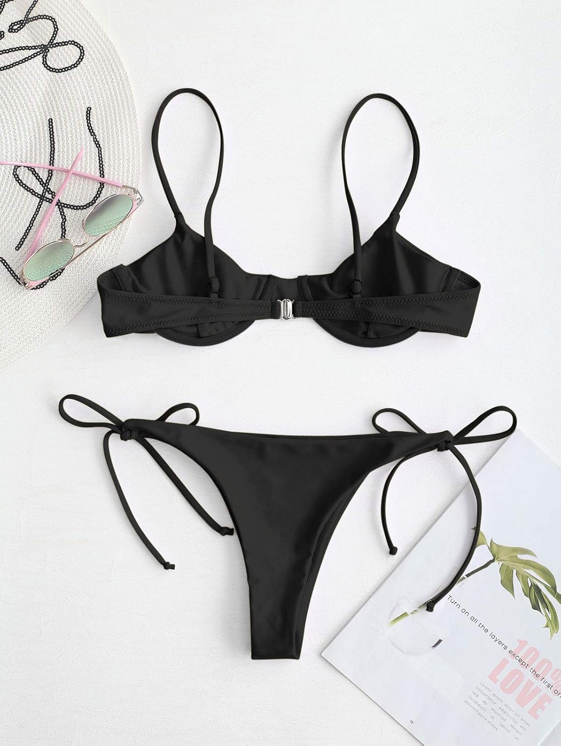Zaful Tie Underwire Balconette Bikini zaful tie underwire balconette bikini set