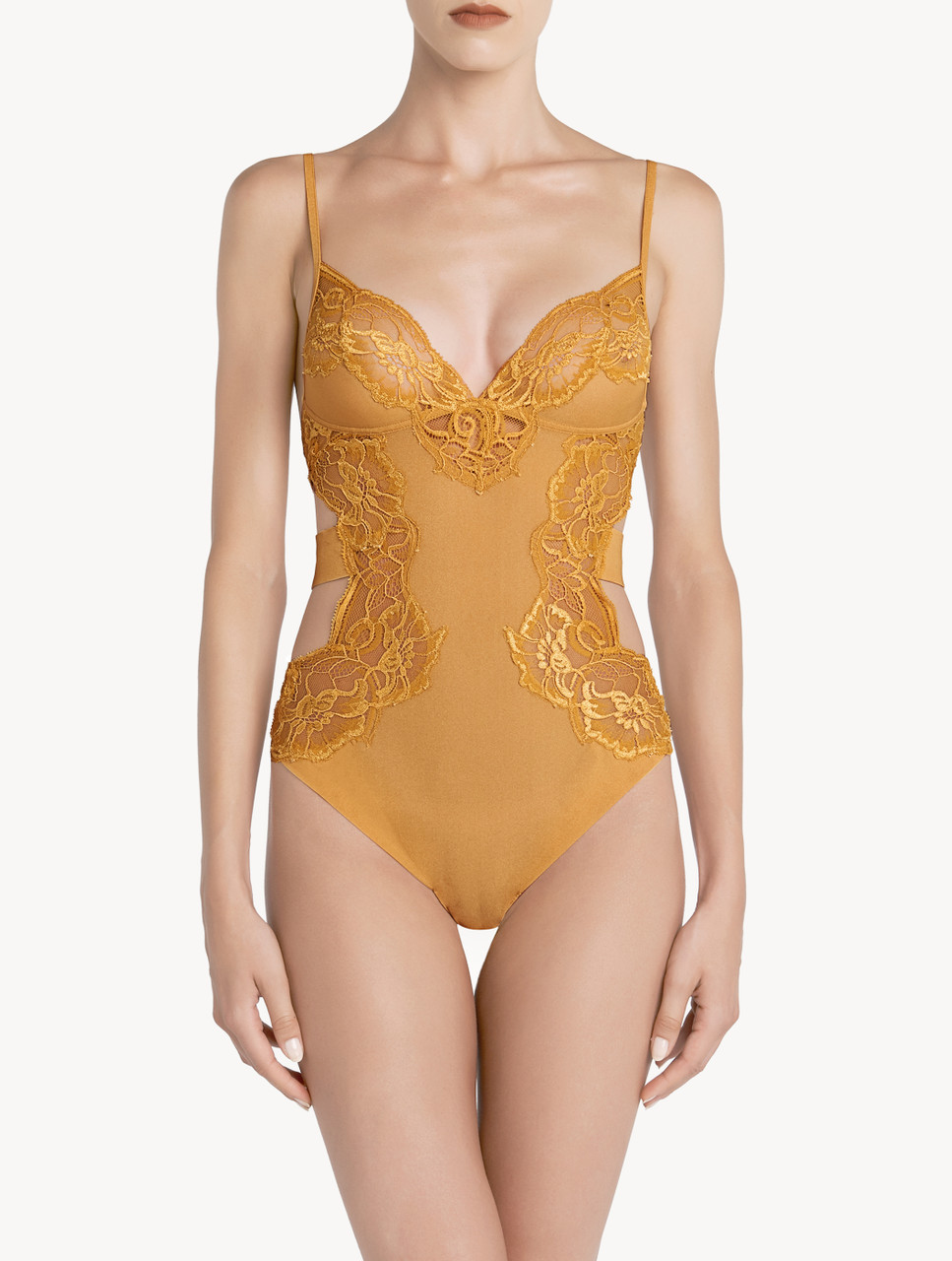 yellow tulle and Leavers lace gold lace bodysuit