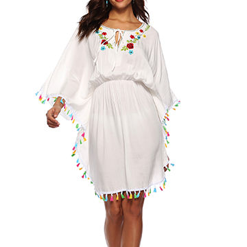 Dress, Beach Cover up Embroidery ladies white beach cover ups