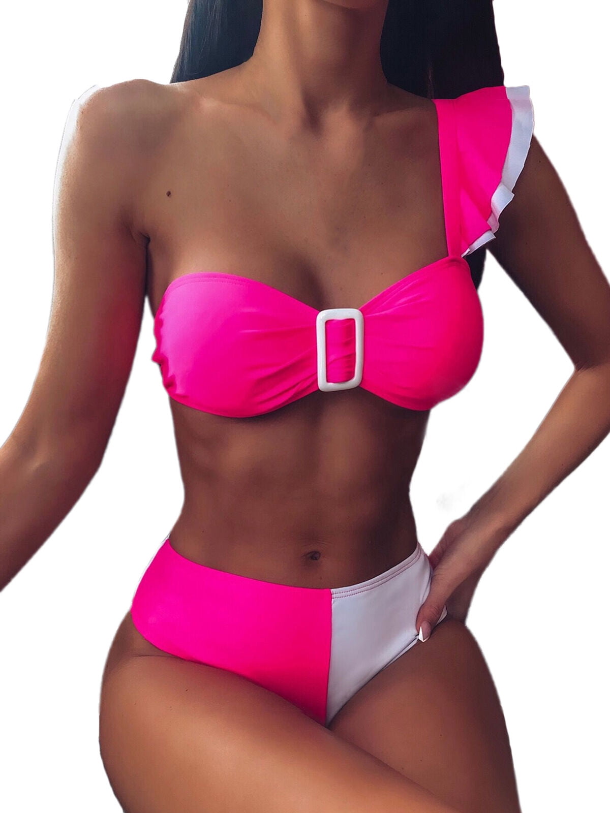 UK Women One Shoulder High Waist Padded one shoulder padded bikini