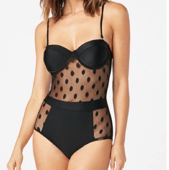 Retro Black Mesh Polka Dot One Piece polka dot mesh swimsuit